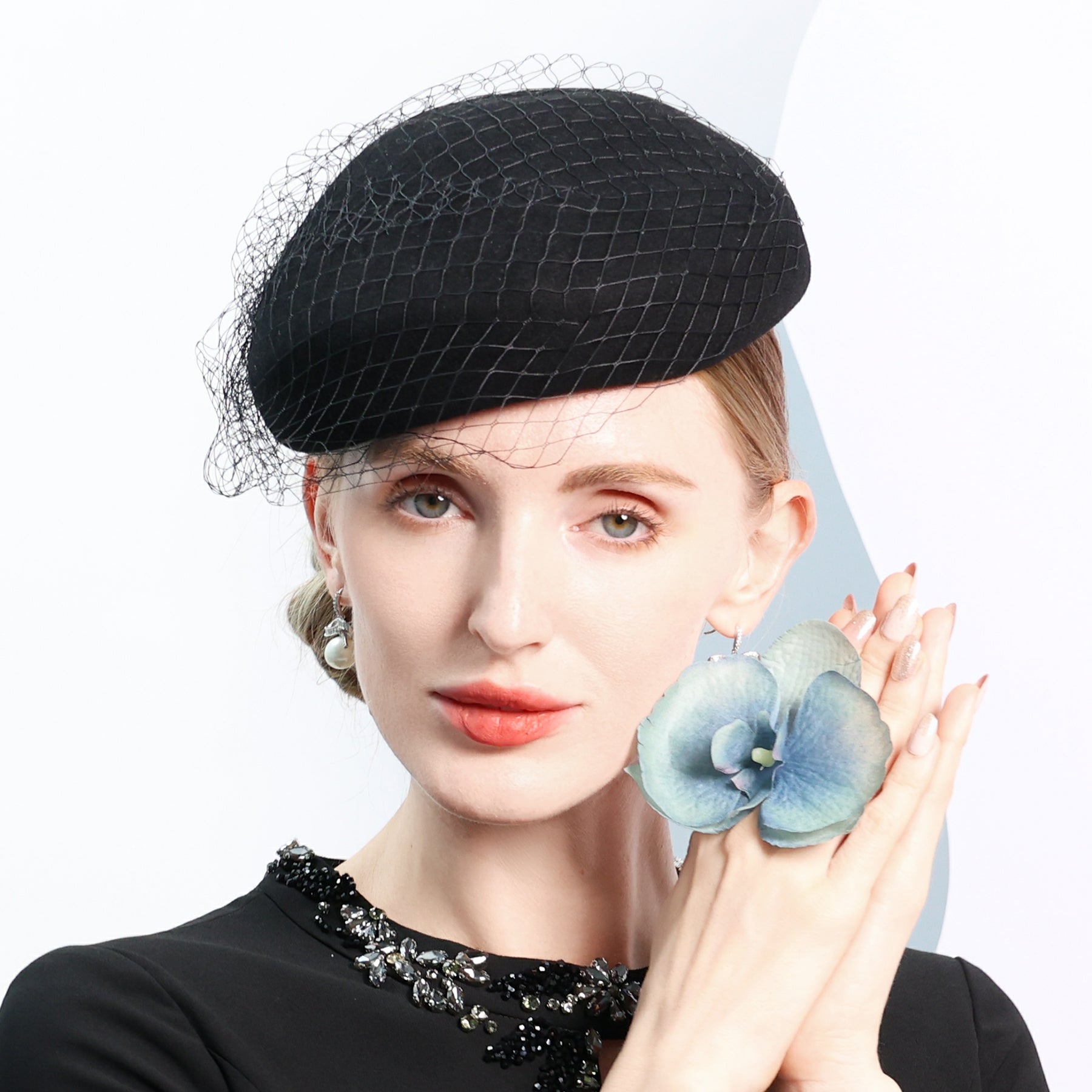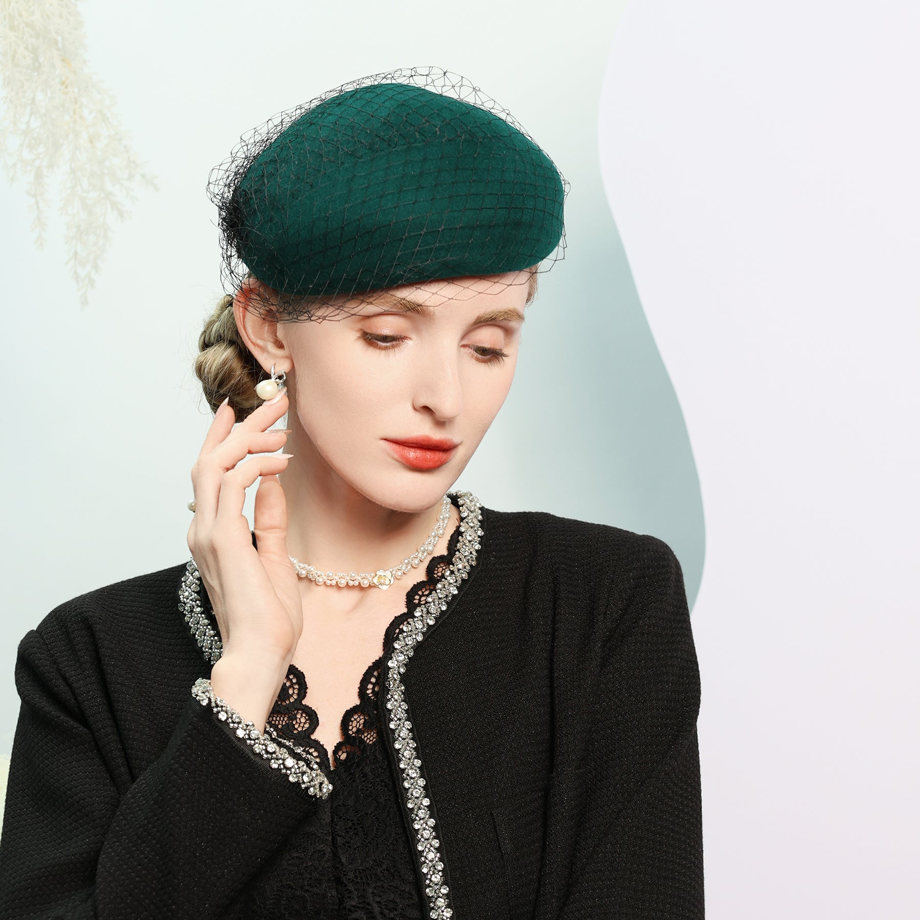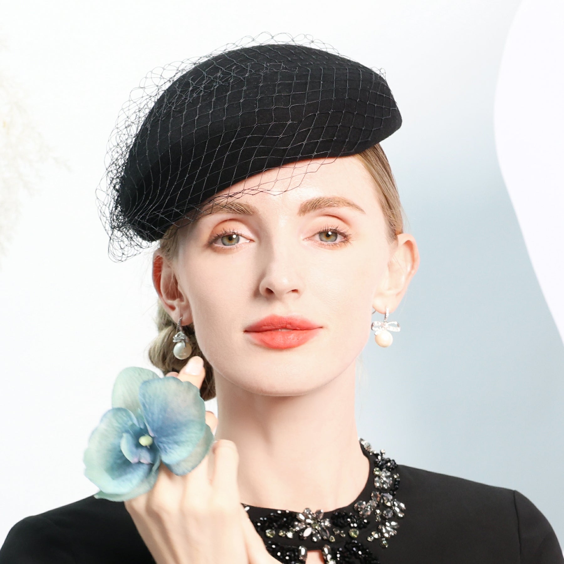 Women’s Winter Wool Veil Cocktail Beret Hats