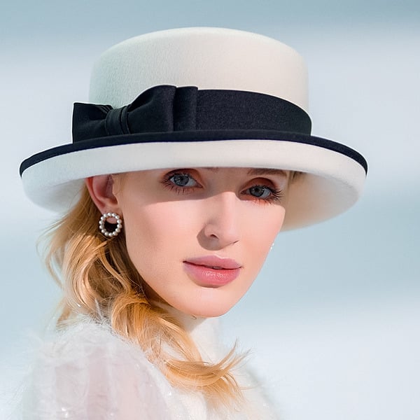 Women’s Winter Wool With Bowknot Ribbons Kentucky Derby Church Hats Flat Caps