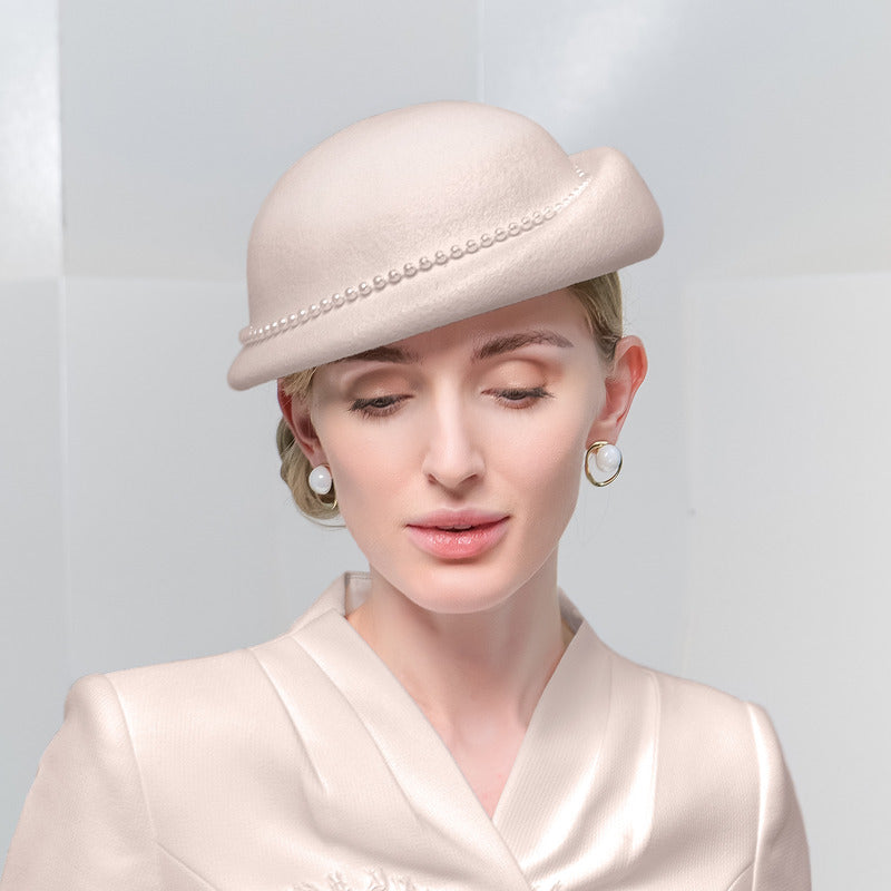 This hat combines style and quality. The wool felt material ensures durability and warmth, while the faux pearls add an elegant touch. Its versatility makes it suitable for various formal occasions throughout the year.