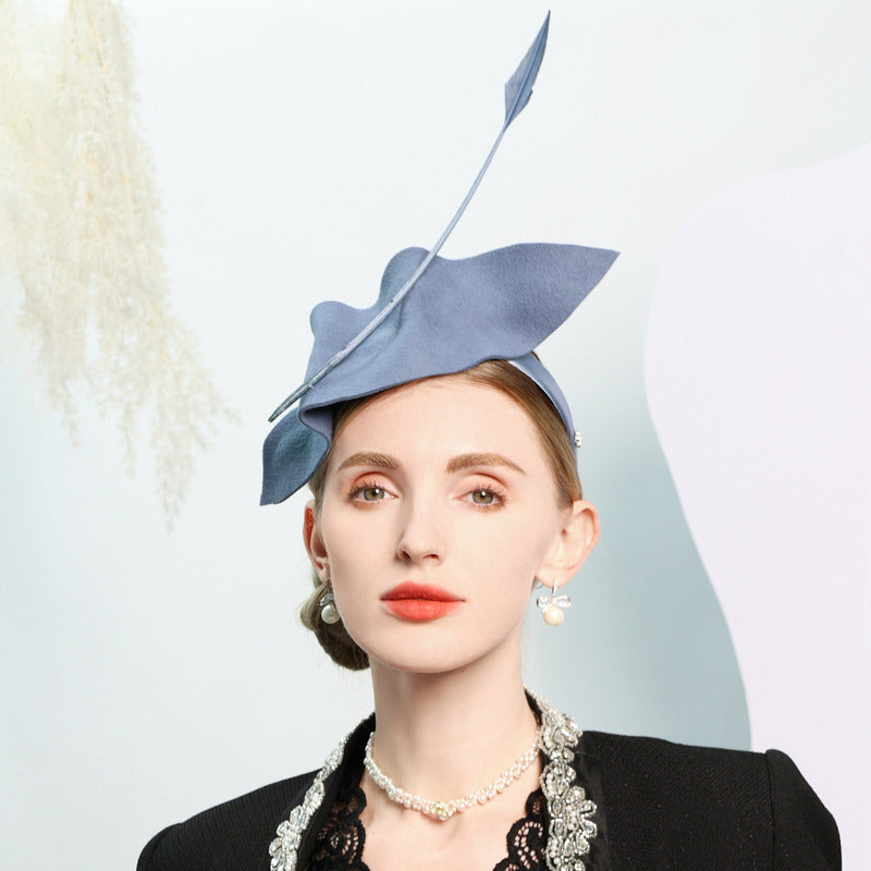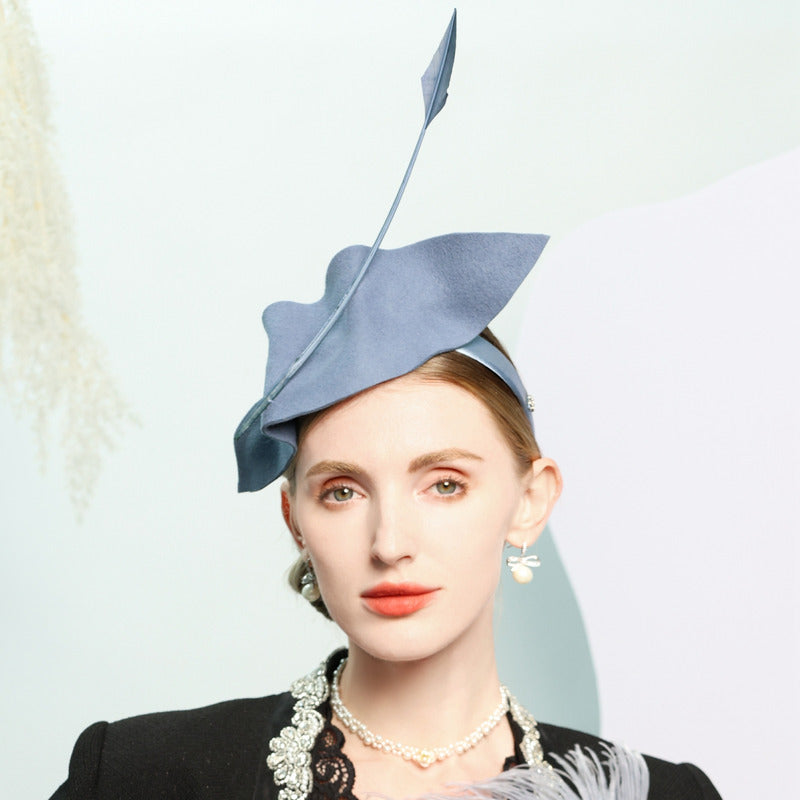 Enhance your formal look with this exquisite fascinator. Crafted from a smooth wool or wool – blend felt, it showcases a solid blue – gray color that exudes elegance. The single, matching feather accent adds a touch of sophistication, making it a perfect statement piece for high – end events.
