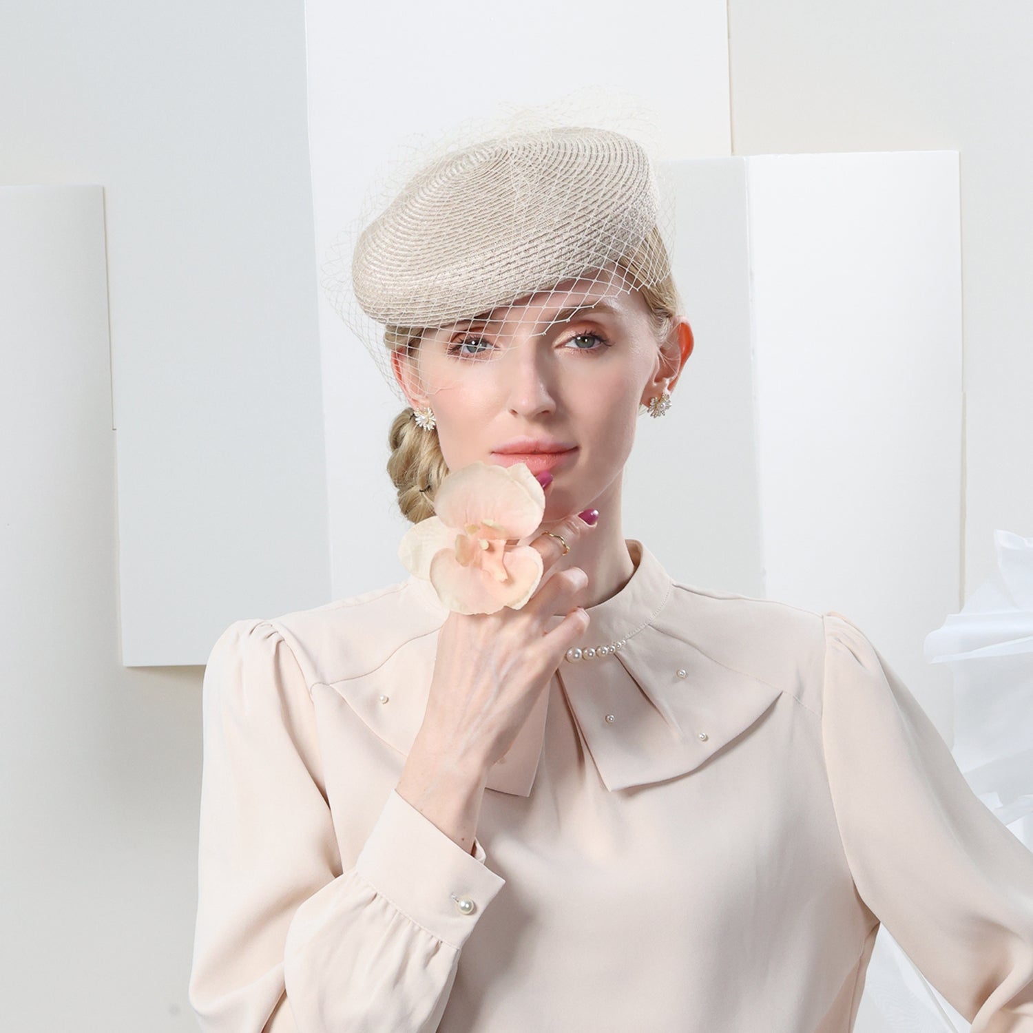 Camel Bowknot Veil Winter Wool Cocktail Pillbox Hat