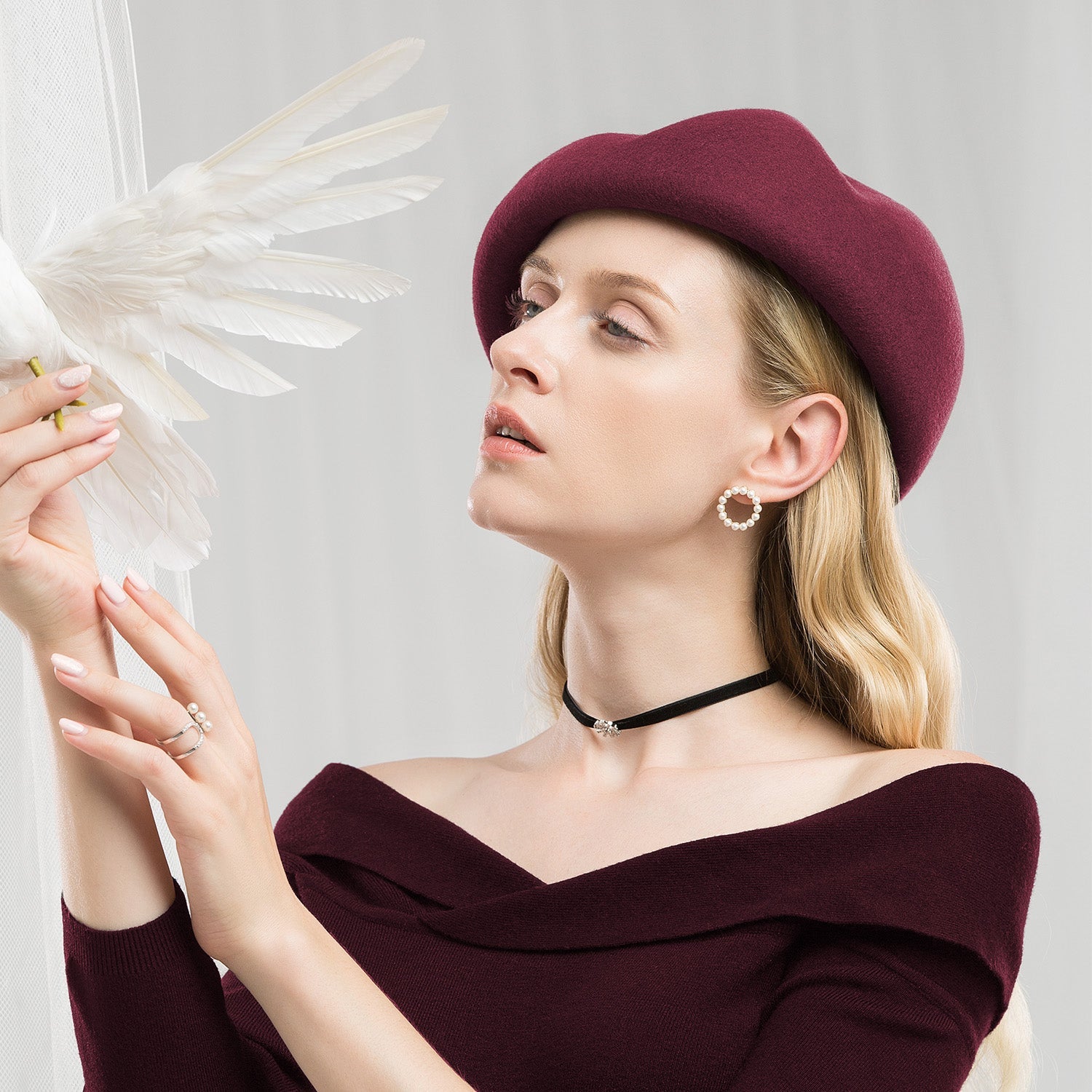 Elegant Winter Bow Veil Wool Wedding Cloche Hats