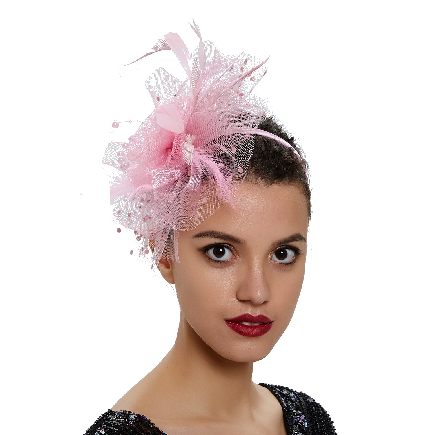 Vintage Faux Feather Mesh Tea Party Cocktail Kentucky Derby Fascinators With Clip Headband