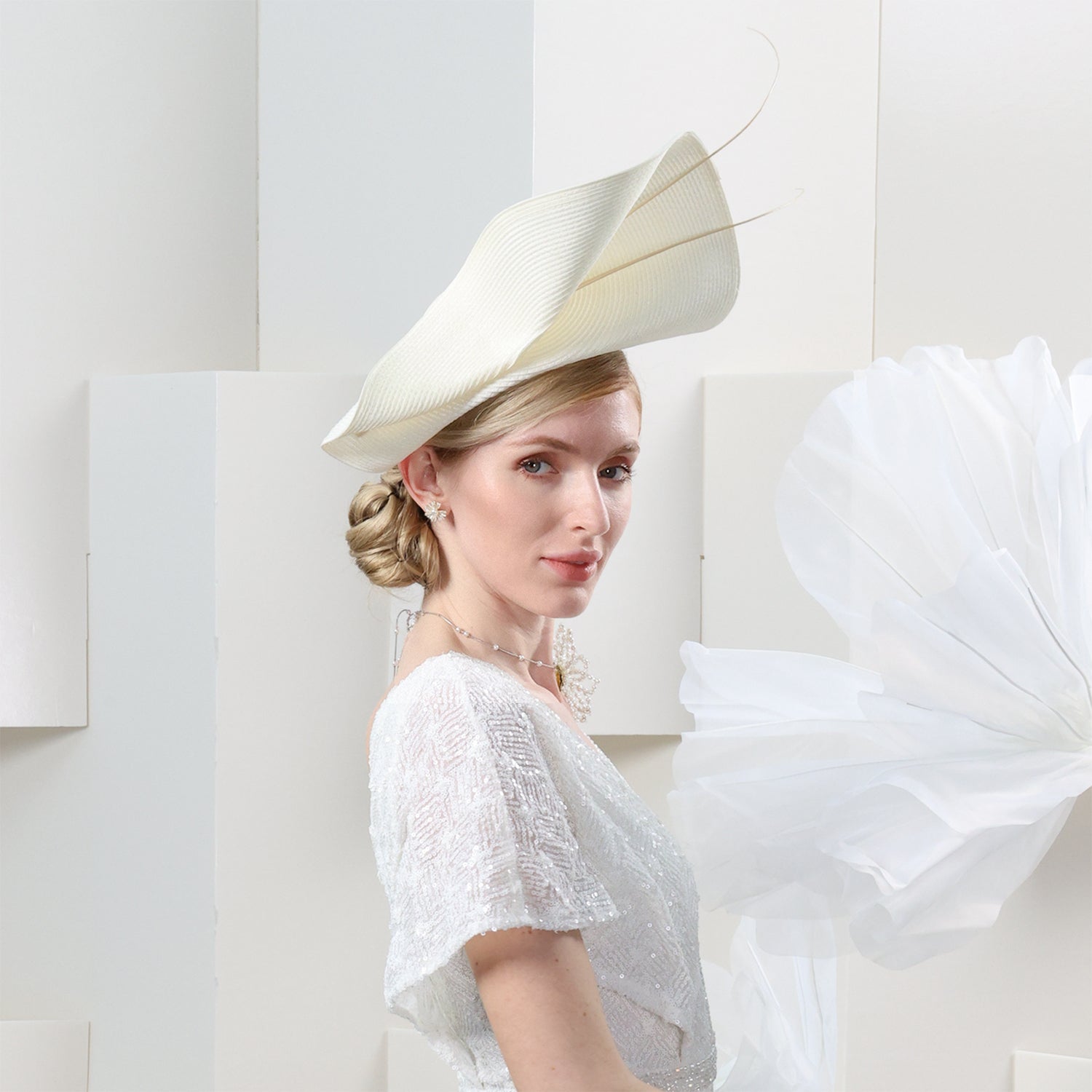 White Large Straw Cocktail Kentucky Derby Fascinator With Headband